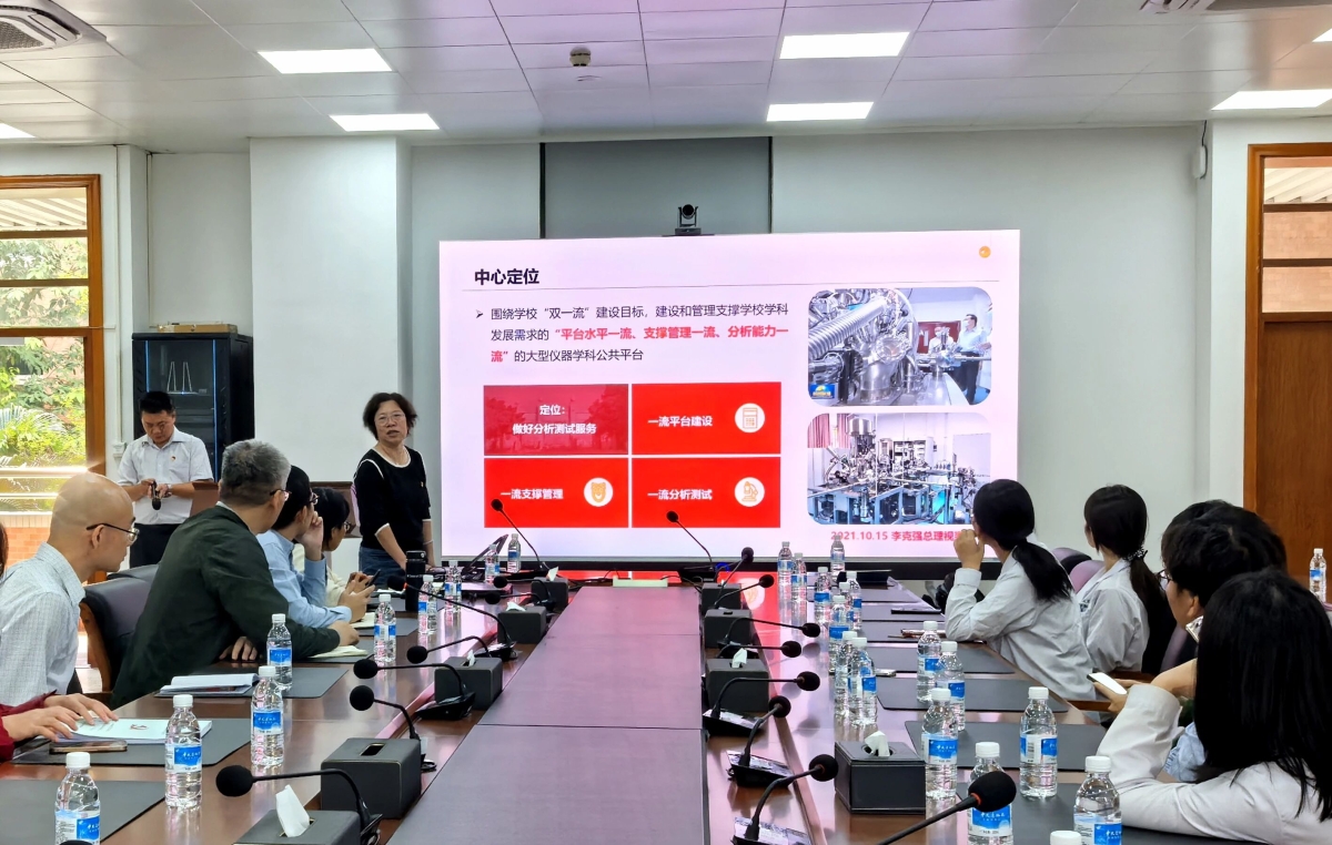 随后,双方在地理学院B栋会议室举行座谈会,会议由丁健同志主持。黄玲凌介绍了分析测试中心的整体建设情况、支部党建工作成效以及党建与业务深度融合的实践路径。她表示,中心将持续深化与地理学院的交流合作,充分发挥仪器平台优势,为学院科研创新与学科高质量发展提供有力支撑。