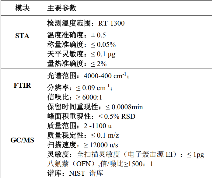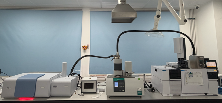 该设备可实现热重-红外(TG-FTIR)联机在线实时检测、热重-气质(TG-GC/MS)联机在线检测,以及热重-红外-气质(TG-FTIR-GC/MS)三联机在线检测。该技术可同步获取逸出气体的成分、结构特征及含量等关键信息,从而对样品组分变化与热分解过程进行系统监测。其应用为复杂样品的组分解析、热裂解机理研究、未知物定性鉴别及反应过程追踪提供了强有力的分析手段。
