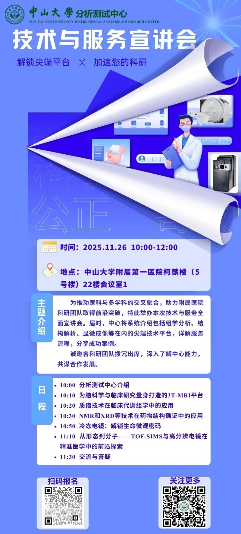 导航痕迹 中山大学分析测试中心 宣讲通知 | 分析测试中心东校园分中心赴中山大学附属第一医院开展技术与服务宣讲会 扫描此二维码分享 宣讲通知 | 分析测试中心东校园分中心赴中山大学附属第一医院开展技术与服务宣讲会 发布人:张博琳 发布日期:2025-11-22 报名时如遇问题,请联系华佳老师,电话:020-39336909