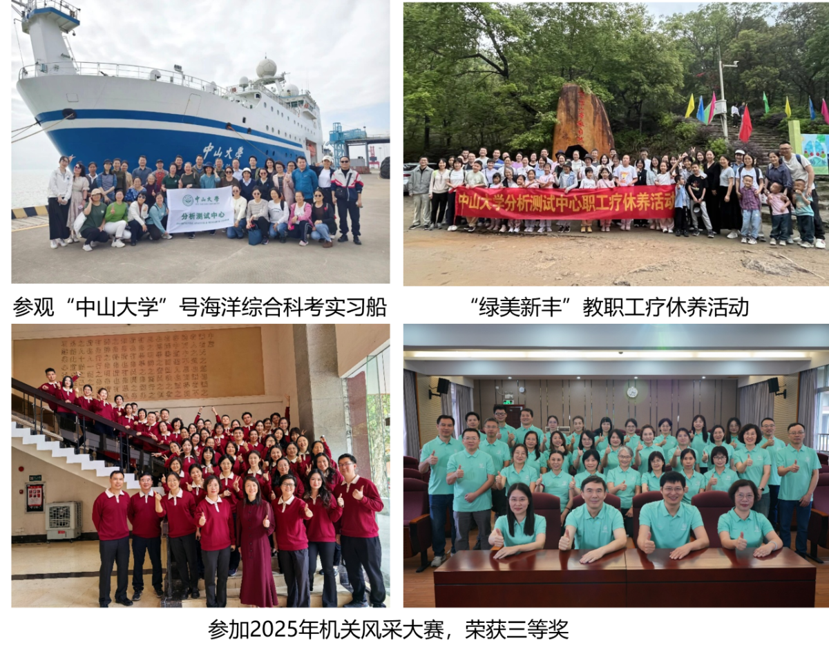 发挥党工共建协同优势,积极组织中心教职工参观 “中山大学” 号海洋综合科考实习船、赴韶关新丰县疗休养、参加学校机关风采大赛等活动,在丰富职工业余生活的同时,切实提升中心团队凝聚力。