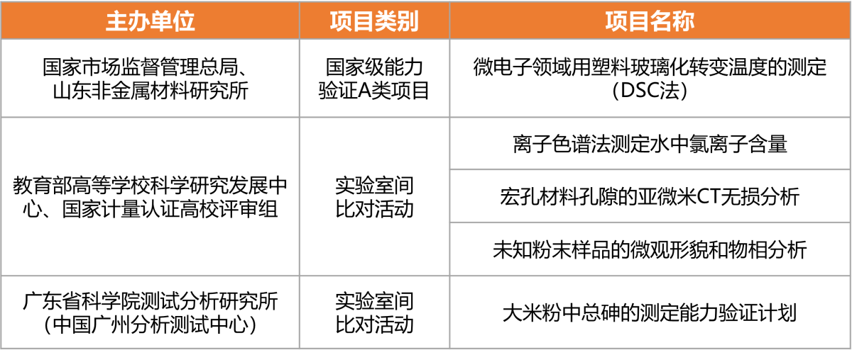 组织中心人员参加国家级能力验证A类项目1项,教育部实验室间比对活动3项,广东省实验室间比对活动1项,均获得“满意”结果。