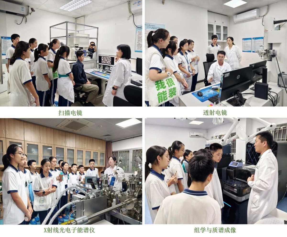 参观过程中,分析测试中心的高科技大型仪器让学生们赞叹不已,他们认真做笔记,积极踊跃地与实验室老师们互动,同时对实验室的喷镀仪、压片机、电子分析天平等也都表现出强烈好奇心。