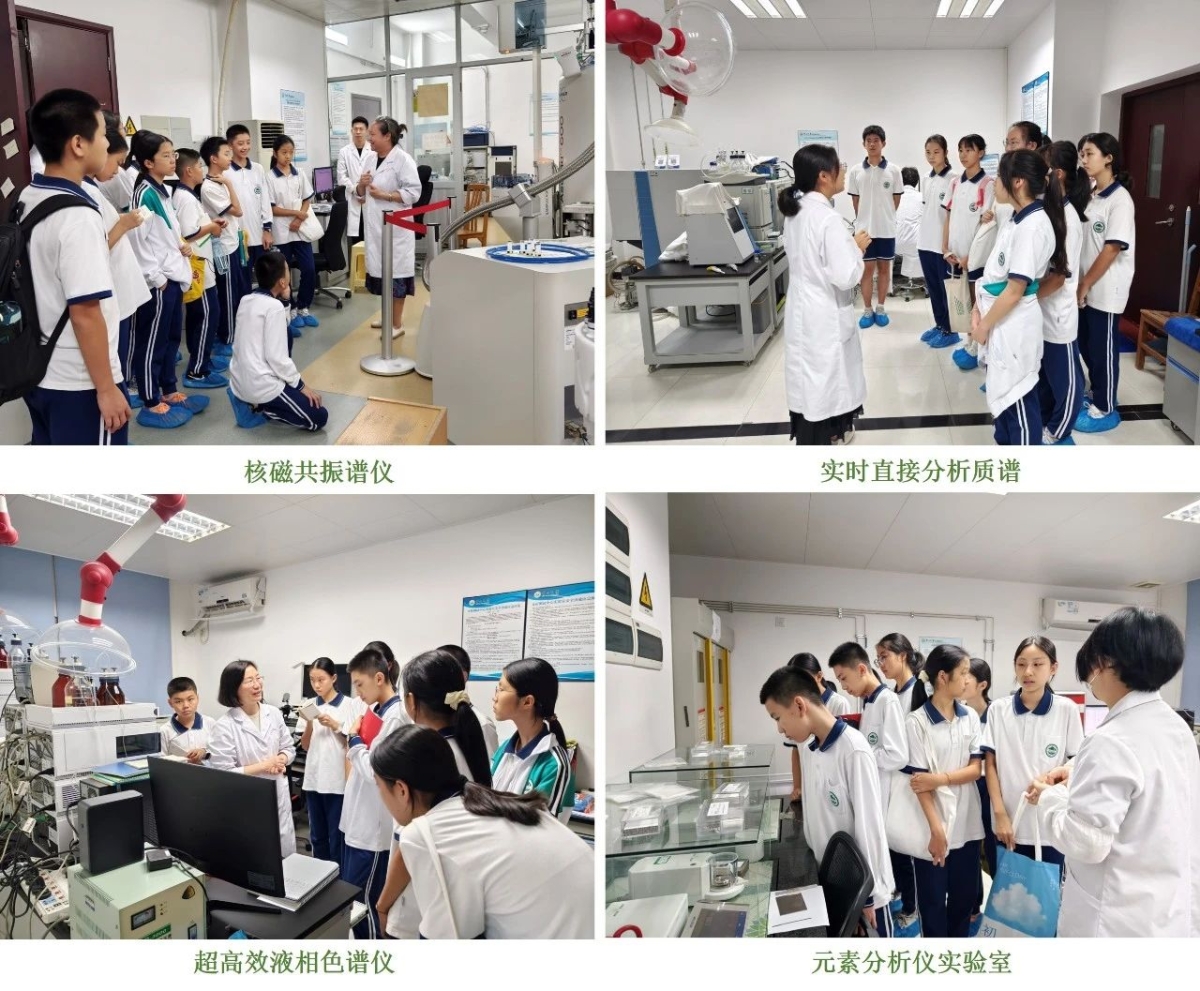 在分析测试中心老师们的带领下,学生们有序地参观了各类实验室,详细了解了电子显微镜、X射线光电子能谱仪、组学与质谱成像、核磁共振谱仪、实时直接分析质谱、超高效液相色谱仪、元素分析仪等大型仪器的原理和构造,以及在生命科学、功能材料、生态环保、生物医学等领域的应用。